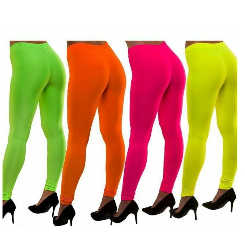 Ladies fancy dress neon leggings. Great for dressing up for a 1980s themed party.