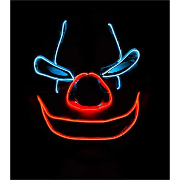 Description: Adult Unisex EL Big Mouth Creepy Clown Neon Light Up Mask. Ideal for Fancy Dress Parties, Halloween, Gigs & Raves etc.